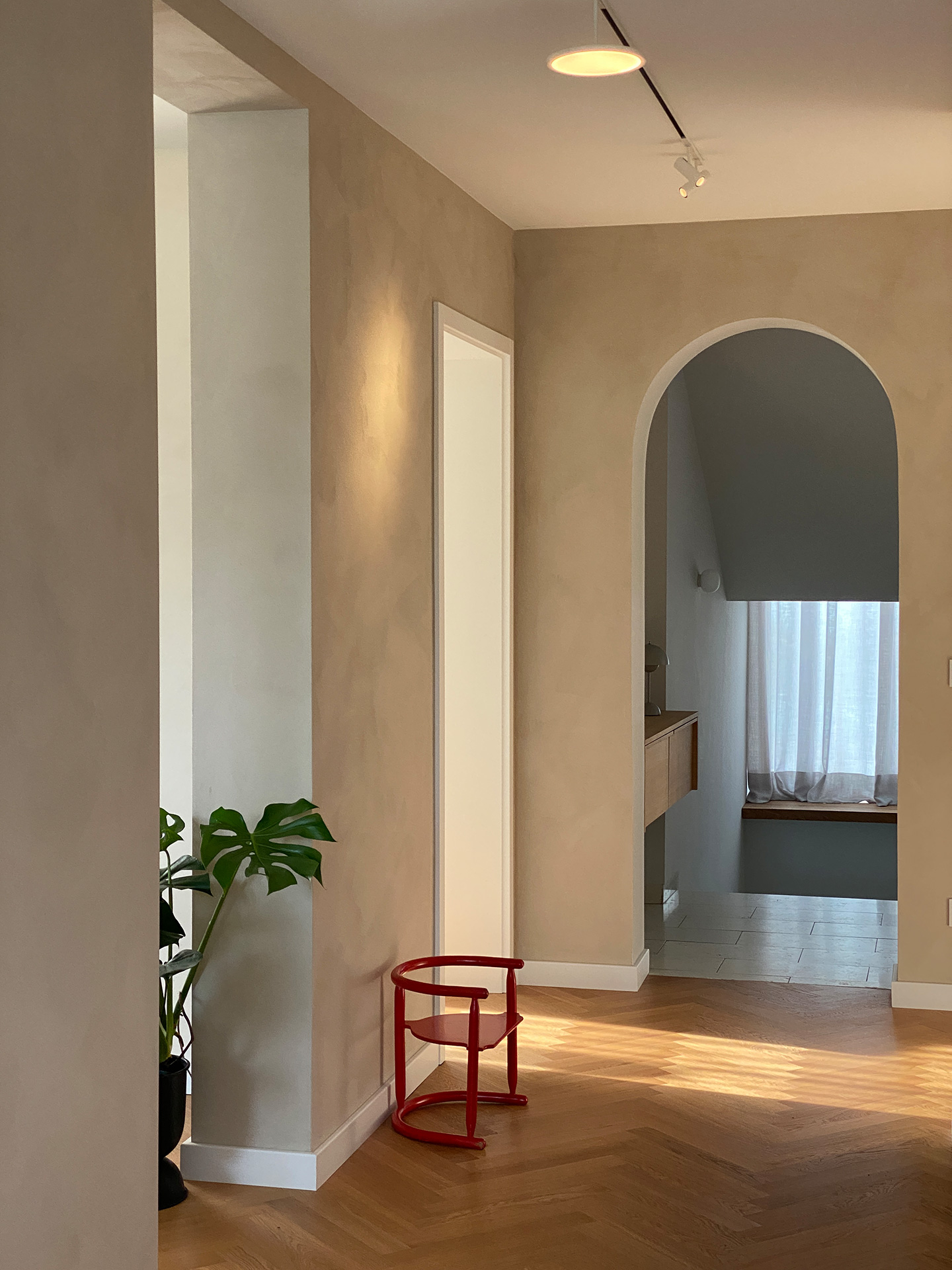 Das ca. 1900 erbaute Stadthaus wurde im Jahre 2020/2021 kernsaniert und aufgestockt. Es entstanden 8 Wohnungen, 1 Penthouse und Gewerbefläche im Erdgeschoss. Fertigstellung: Dezember 2021.